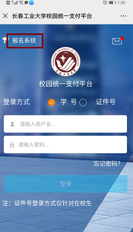 登录地址:长春工业大学微信公众号中-工大服务-学费缴纳-报名系统