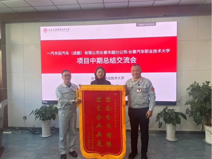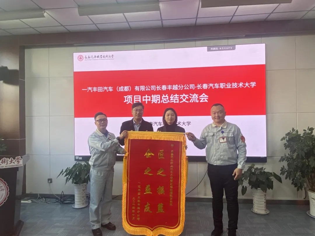 一汽丰田长春丰越分公司向长春汽车职业技术大学赠予锦旗表彰校企合作成果